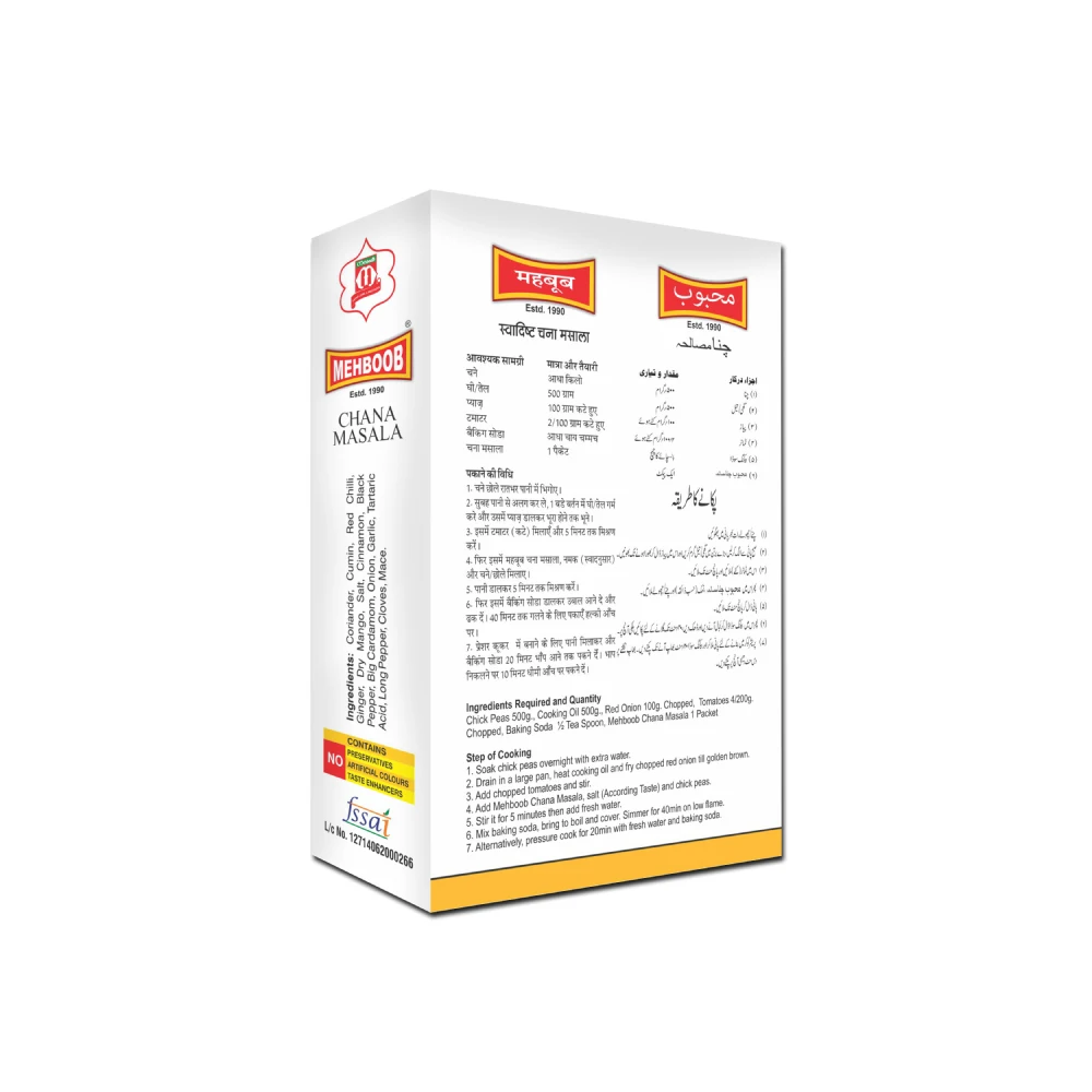 Just 10g of Mehboob Chana Masala is enough to prepare 500g of delicious chana gravy, making it both economical and convenient for home kitchens and commercial use. Add depth, aroma, and traditional taste to your chana dishes with Mehboob Chana Masala — simple, flavorful, and reliable.